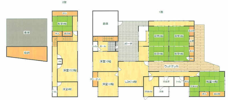 | 床面積 | 1階308.87平方メートル 2階106.79平方メートル 合計415.66平方メートル |