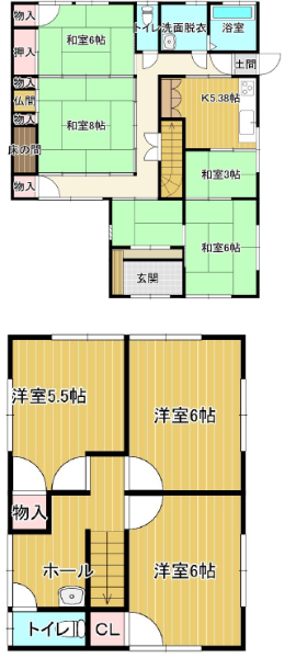 | 床面積 | 1階 94.85平方メートル 2階 43.77平方メートル 合計 138.62平方メートル |
