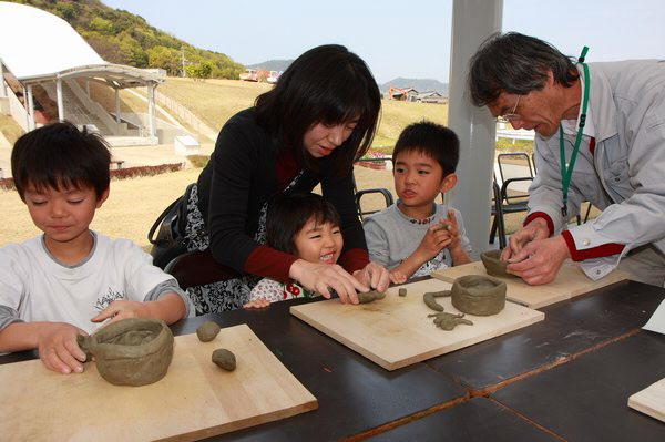 模様瓦、土器、土鈴、えんぴつたて、貯金箱、手形、ランプシェードなど、思い思いの素焼きの作品作りができます。焼き上がりまで1か月ほどお時間をいただきます。