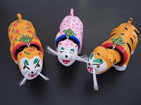 白い無地の張り子の虎に好きな模様を絵付けできます。