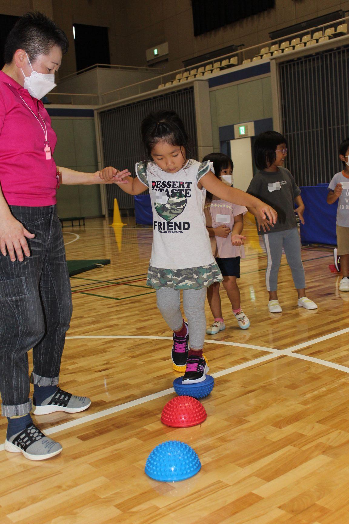 ▲次に「サーキット遊び」です。徐々に増えていく遊具をうまく乗り越えて進みます。