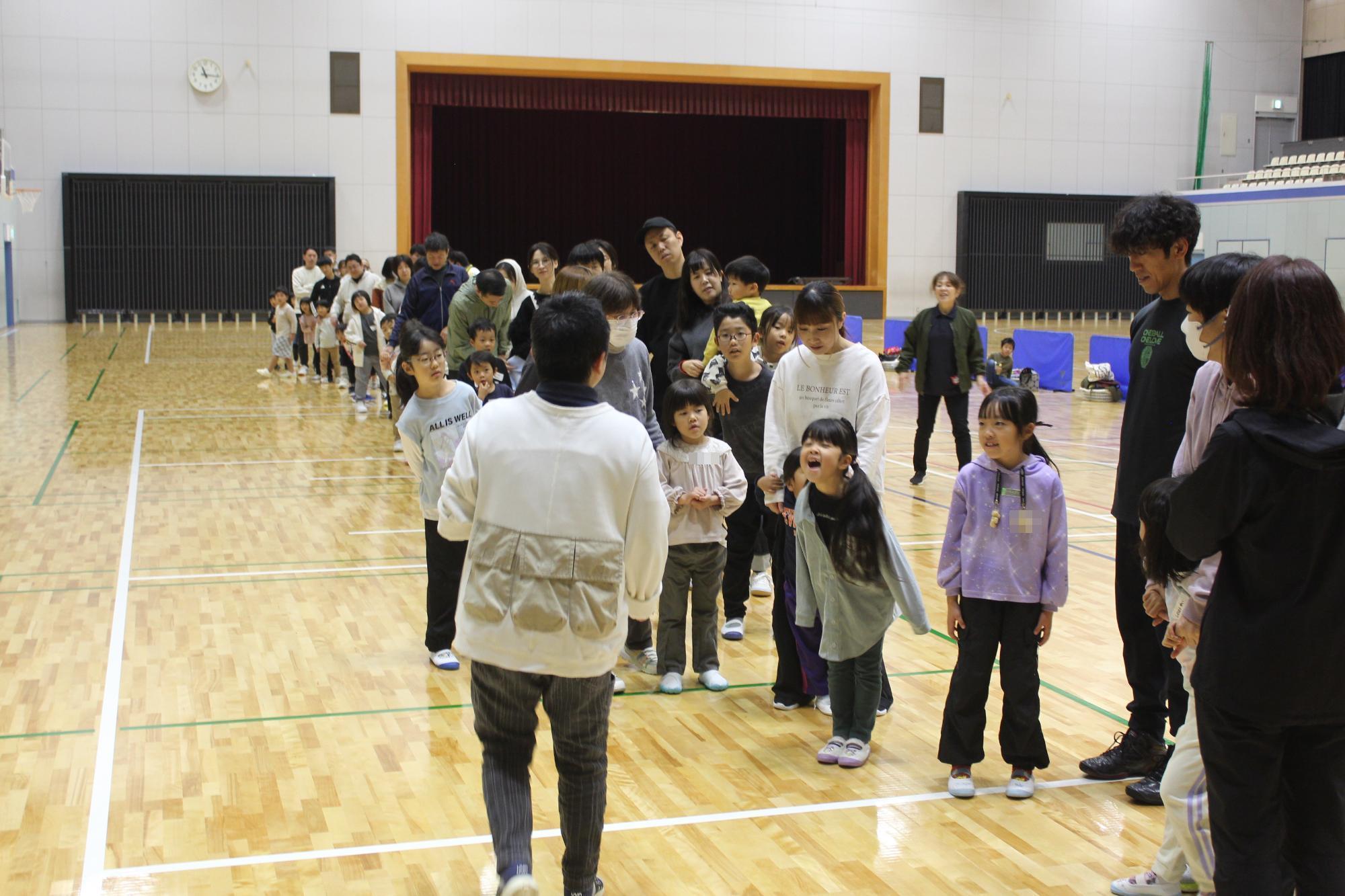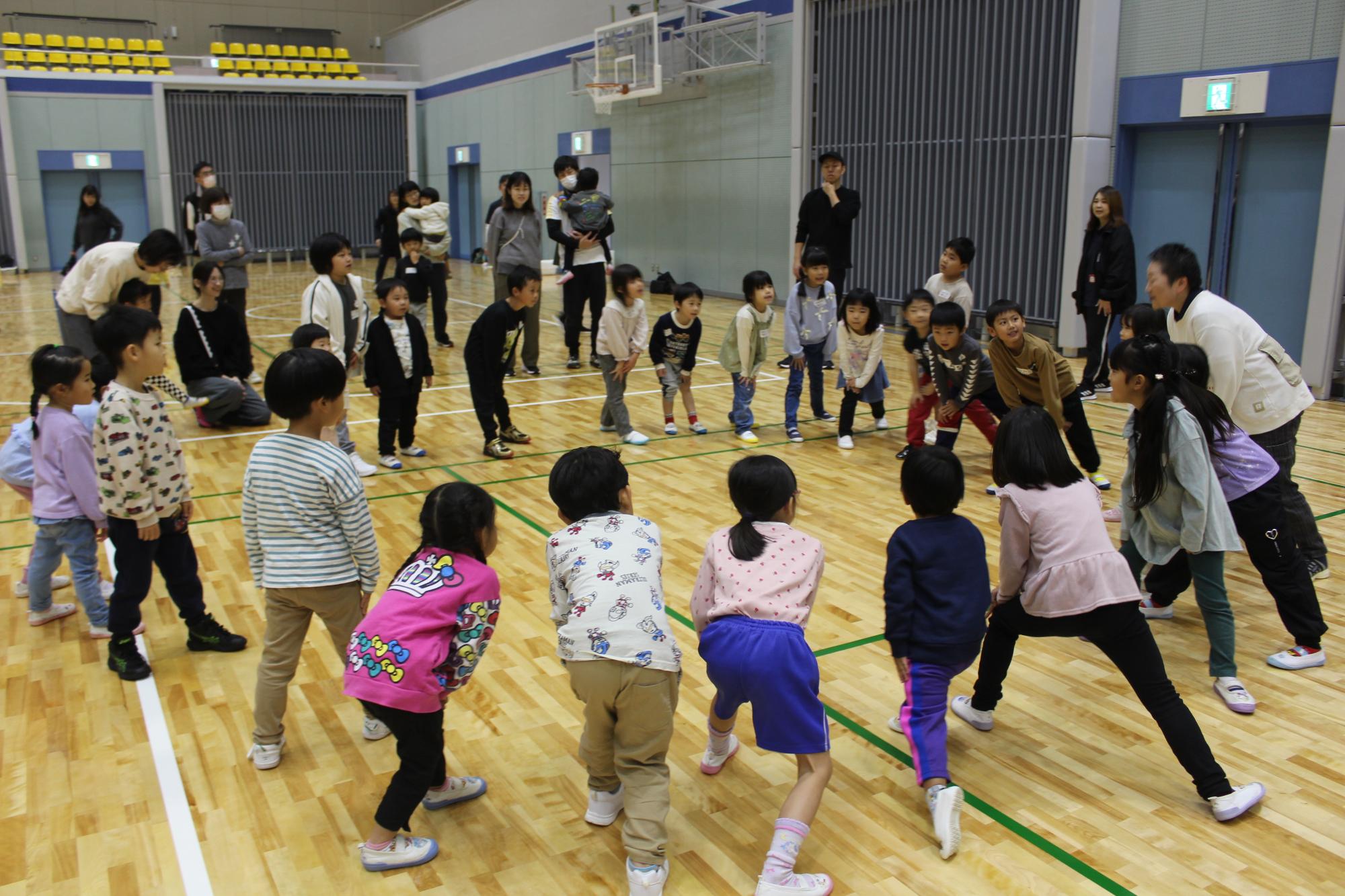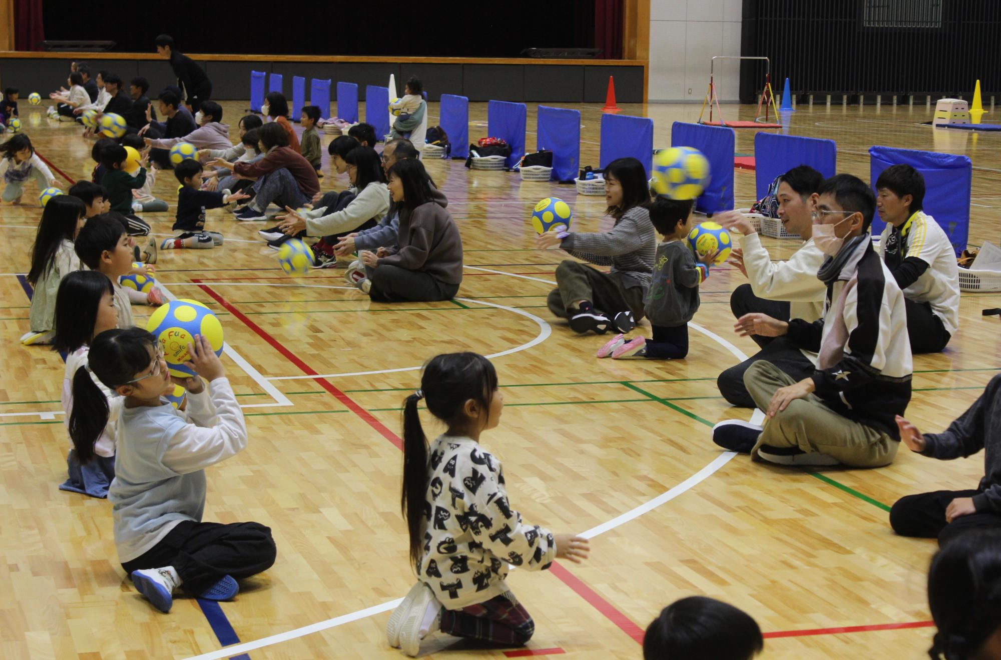 肌寒い日が増えてきましたが、寒さにも負けず27組の親子総勢80名が元気いっぱい三豊市総合体育館に集まりました。