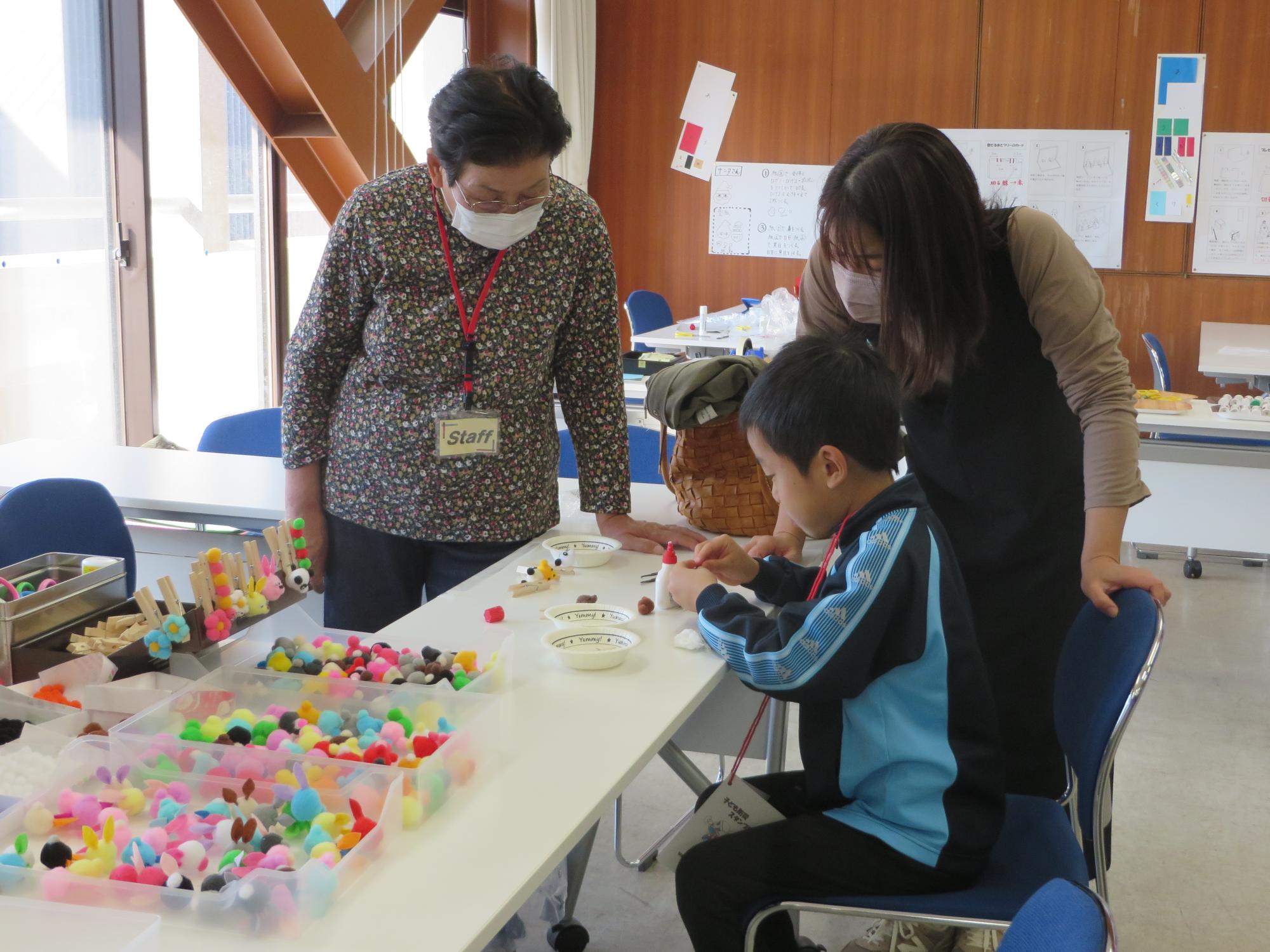 2階はものづくりブースを中心に行いました。今年度はキラキラ光るものやフワフワしたものが人気でした。